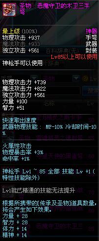 | 85 | 圣物 : 恶魔守卫的木卫三手弩 | *Lv85~91普通地下城怪物掉落 | ||