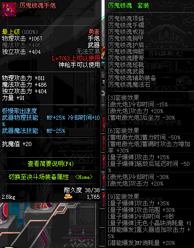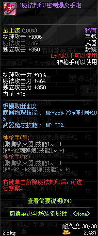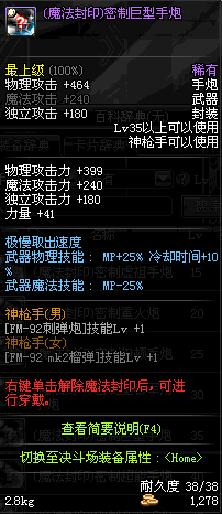 | 35 | (魔法封印)密制巨型手炮 | *Lv34~41普通地下城怪物掉落 |