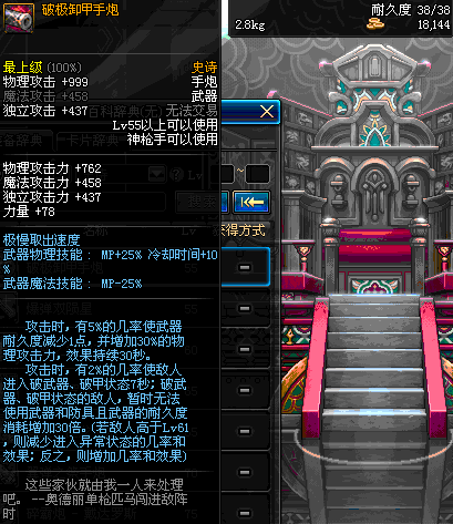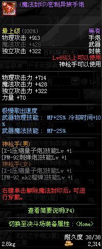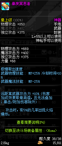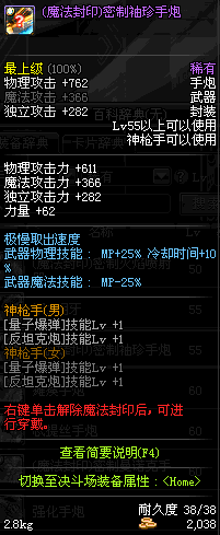 | 55 | 破极卸甲手炮 | *Lv54~61深渊地下城怪物掉落 *在NPC沉默之克雷娅的物品店购买 |
