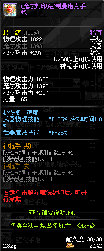 | 60 | (魔法封印)密制曼诺克手炮 | *Lv58~66普通地下城怪物掉落 *完成[消灭机关兵]任务 *使用Lv58~66怪物掉落的设计图进行制作 |