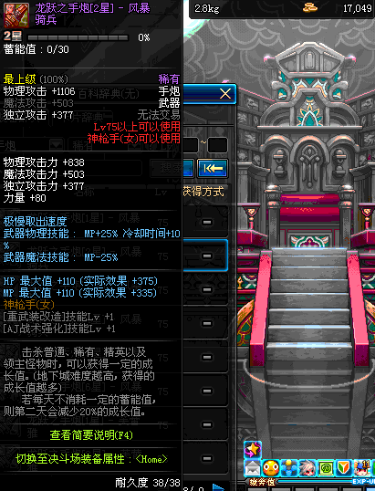 | 75 | 龙跃之手炮[2星] – 风暴骑兵 | *完成二次觉醒任务后可以从NPC小铁柱处获得此道具。 | ||
