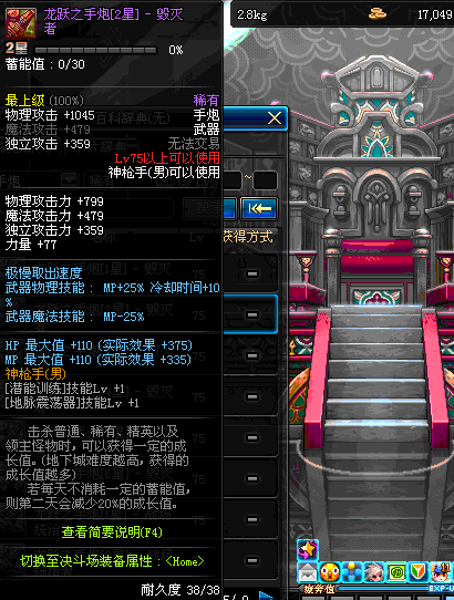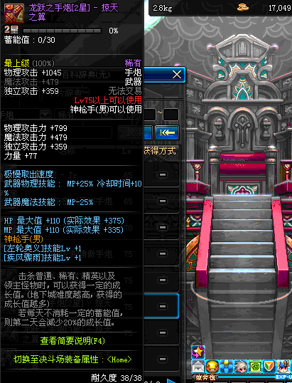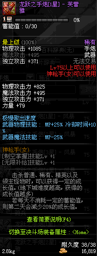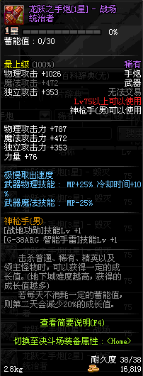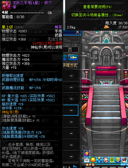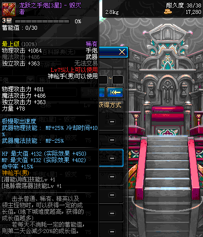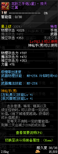 | 75 | 龙跃之手炮[3星] – 毁灭者 | *完成二次觉醒任务后可以从NPC小铁柱处获得此道具。 | ||