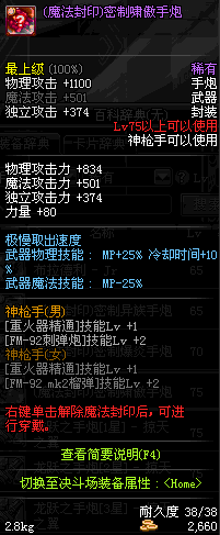| 75 | (魔法封印)密制啸傲手炮 | *Lv75~81普通地下城怪物掉落 *完成[调查紫雾团]任务 *使用Lv75~81怪物掉落的设计图进行制作 |