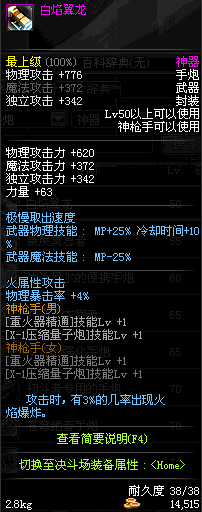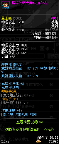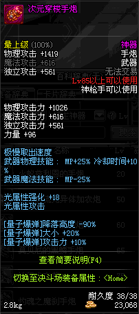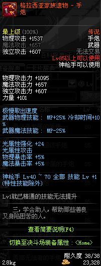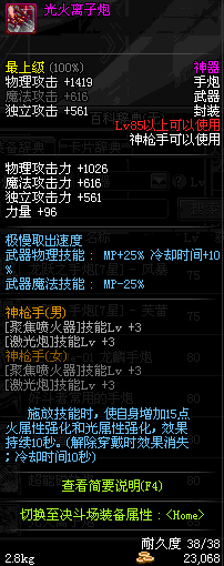 | 85 | 光火离子炮 | *Lv85~91普通地下城怪物掉落 *在加百利的神秘商店购买 |
