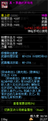 | 74 | 真·戮蛊的哀鸣炮 | *设计图(70LV以上普通地下城 登场的NPC加百利 出售) *戮蛊的哀鸣炮 → 用远古神器装备进化书升级(NPC船长鲁特 出售) |