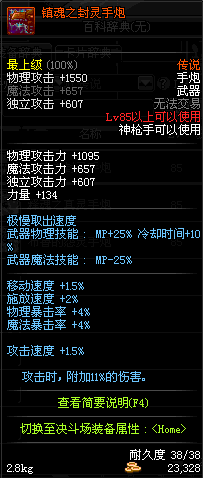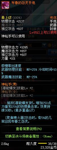 | 85 | 布鲁的怨灵手炮 | *巨灵布鲁 掉落(地下城: 魂:幽灵列车 5图) *设计图(地下城 魂:幽灵列车 登场的NPC加百利 出售) |