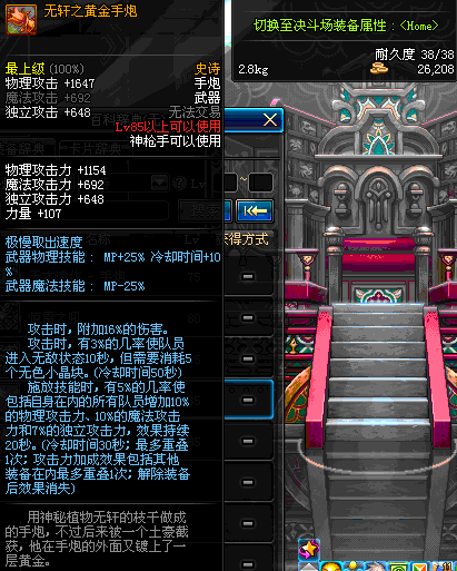 | 85 | 无轩之黄金手炮 | *Lv84~91深渊地下城怪物掉落 *攻坚队完成安徒恩团队模式的[消灭安徒恩]任务时,获得的奖励。 |