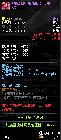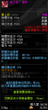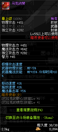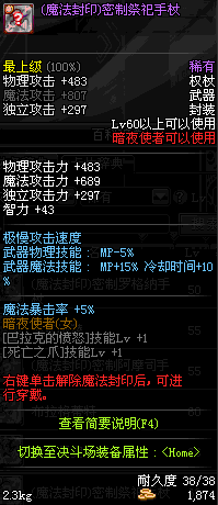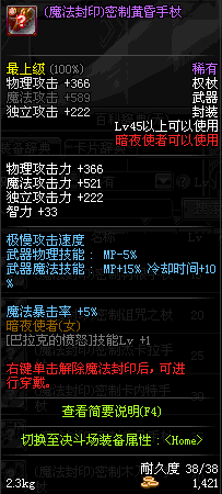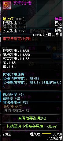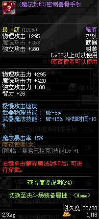 | 辅助装备: | 全职业 鬼剑士 女鬼剑 女格斗 男格斗 神枪手 女枪手 魔法师 男法师 圣职者 暗夜使者 守护者 |