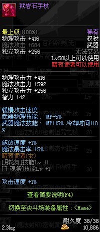 | 50 | 狱岩石手杖 | *觉醒任务 - 死亡之塔30层任务奖励 | ||
