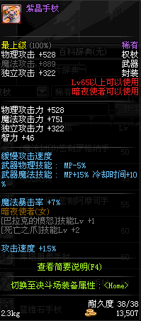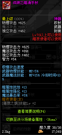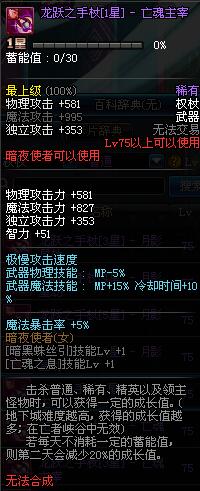 | 70 | 深渊之暗涌手杖 | *Lv70~76普通地下城怪物掉落 *在加百利的神秘商店购买 |