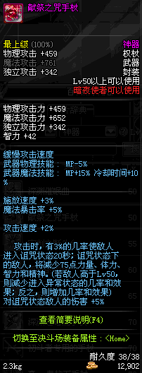 | 50 | 献祭之咒手杖 | *Lv50~56普通地下城怪物掉落 *在加百利的神秘商店购买 |