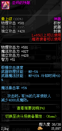| 65 | 布鲁之怨灵手杖 | *Lv64~71深渊地下城怪物掉落 *在NPC沉默之克雷娅的物品店购买 |