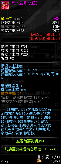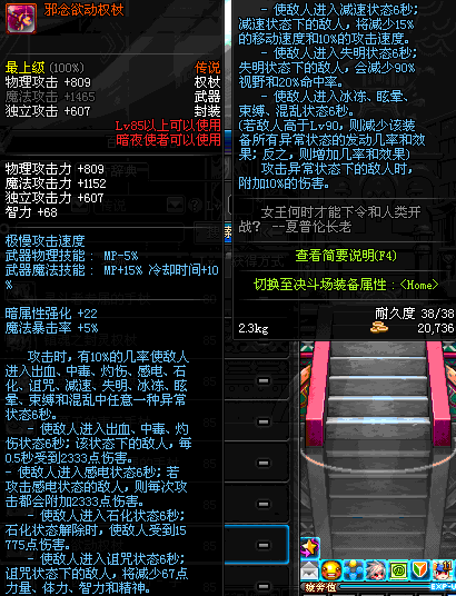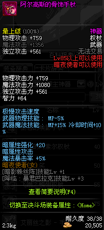 | 85 | 黑暗绝魂之杖 | *Lv84~91深渊地下城怪物掉落 *攻坚队完成安徒恩团队模式的[消灭安徒恩]任务时,获得的奖励。 |