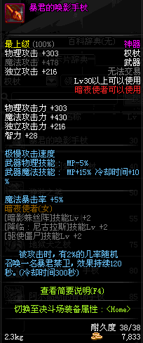 | 30 | 暴君的唤影手杖 | *暴君奥古斯都 掉落(暴君的祭坛) *在NPC克伦特的物品店购买(阿拉德陨石×105) |