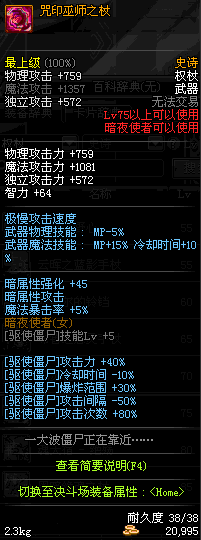 | 40 | 圣物 : 复魂天使的木乃伊手杖 | *Lv39~46普通地下城怪物掉落 |