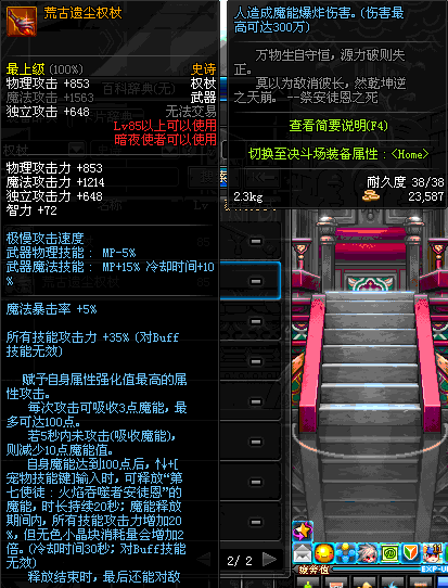 | 35 | 圣物 : 黑暗天使的兽骨手杖 | *Lv34~41普通地下城怪物掉落 |
