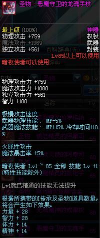 | 85 | 圣物 : 恶魔守卫的龙魂手杖 | *Lv85~91普通地下城怪物掉落 | ||