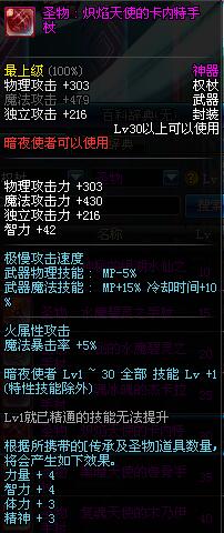 | 30 | 圣物 : 炽焰天使的卡内特手杖 | *Lv29~36普通地下城怪物掉落 |