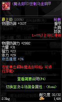 | 80 | (魔法封印)密制乌金肩甲 | *Lv80~86普通地下城怪物掉落 |