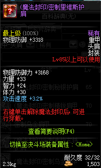 | 85 | (魔法封印)密制里维斯护肩 | *Lv85~91普通地下城怪物掉落 *完成[为了天界的和平]任务 |