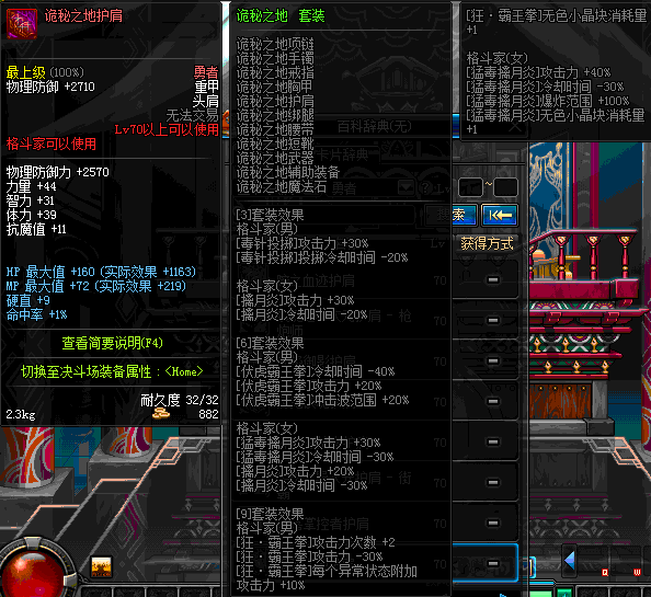 | 30 | 暴君奥古斯都的钢铁护肩 | *暴君奥古斯都 掉落(暴君的祭坛) *在NPC克伦特的物品店购买(阿拉德陨石×64) |