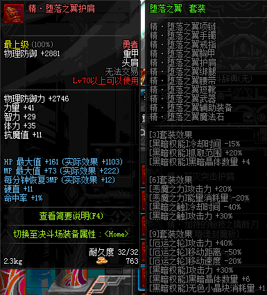 | 70 | 邪神之怒护肩 | *Lv69~76深渊地下城怪物掉落 | 邪神之怒套装 | |