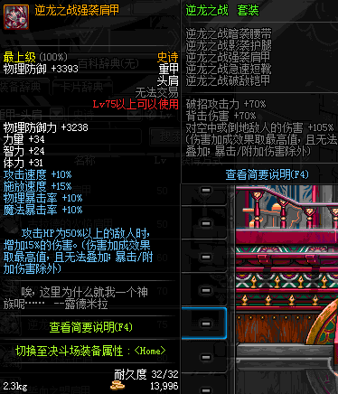 | 75 | 逆龙之战强袭肩甲 | *Lv74~81深渊地下城怪物掉落 | 逆龙之战 套装 | |
