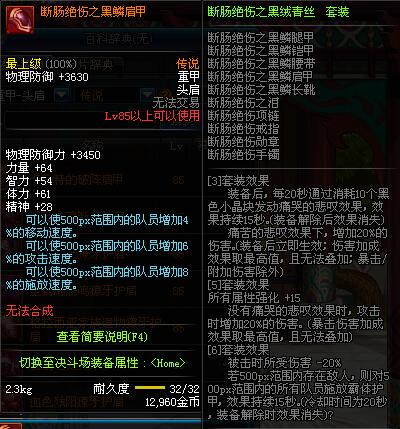| 85 | 断肠绝伤之黑鳞肩甲 | *昨日之巴斯顿 掉落 (在远古地下城里出没。) *从NPC鲁特的物品店出售的[断肠绝伤防具礼盒]中获得 |