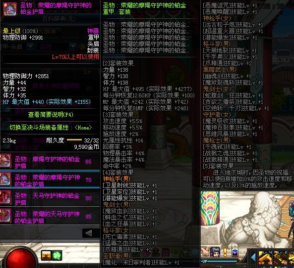 | 85 | 圣物 :荣耀的天马守护神的铂金护肩 | *Lv85~91普通地下城怪物掉落 | ||