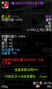 | 50 | 圣物 :荣耀的战争女神的墨钢长靴 | *Lv50~56普通地下城怪物掉落 |