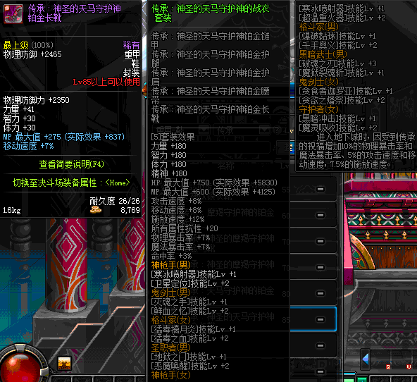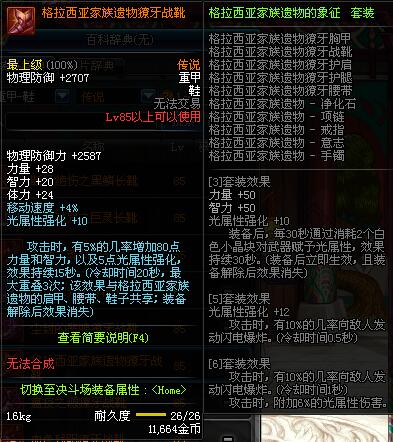 | 85 | 圣物 :荣耀的天马守护神的铂金长靴 | *Lv85~91普通地下城怪物掉落 | ||