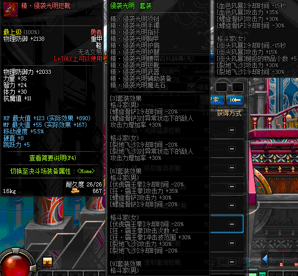 | 30 | 圣物 :荣耀的守夜女神的星纹长靴 | *Lv29~36普通地下城怪物掉落 |