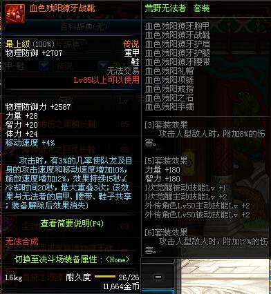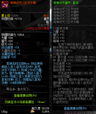 | 85 | 誓血之盟战靴 | *Lv84~91深渊地下城怪物掉落 | 誓血之盟 套装 | |