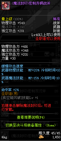 | 15 | (魔法封印)密制锯齿斧 | *Lv13~21普通地下城怪物掉落 *完成[专职贺礼]任务 |
