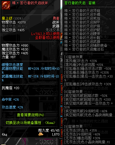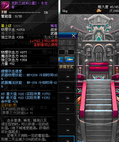 | 45 | 天启战斧 | *Lv45~51普通地下城怪物掉落 *在加百利的神秘商店购买 |