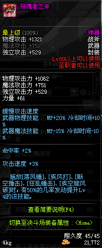 | 80 | 狩魂者之斧 | *Lv80~86普通地下城怪物掉落 *在加百利的神秘商店购买 |