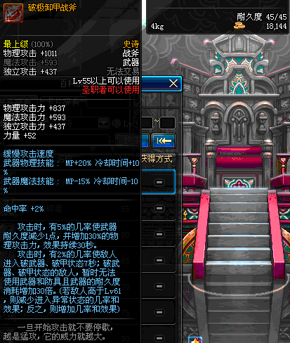 | 55 | 破极卸甲战斧 | *Lv54~61深渊地下城怪物掉落 *在NPC沉默之克雷娅的物品店购买 |