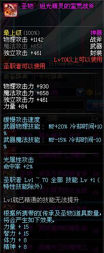 | 70 | 圣物 : 旭光精灵的蛮荒战斧 | *Lv70~76普通地下城怪物掉落 |