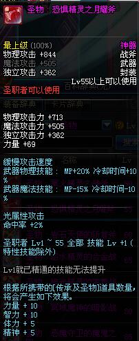 | 55 | 圣物 : 恐惧精灵之月耀斧 | *Lv53~61普通地下城怪物掉落 |