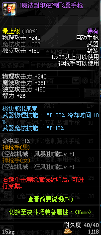 | 35 | (魔法封印)密制飞翼手枪 | *Lv34~41普通地下城怪物掉落 |