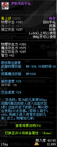 | 10 | 圣物 : 神秘的银湖水仙之自动手枪 | *Lv8~14普通地下城怪物掉落 |