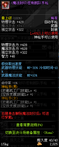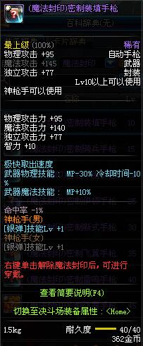 | 15 | (魔法封印)密制骑兵手枪 | *Lv13~21普通地下城怪物掉落 *完成[专职贺礼]任务 |