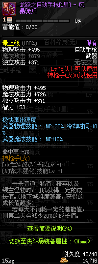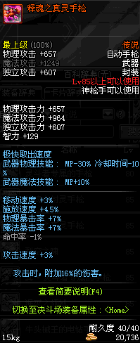 | 15 | 圣物 : 水魔碧灵之自动手枪 | *Lv13~21普通地下城怪物掉落 |