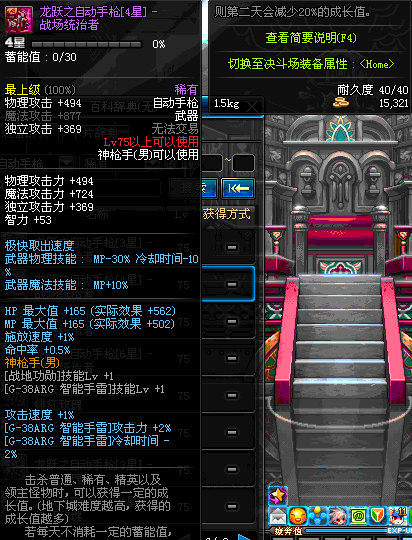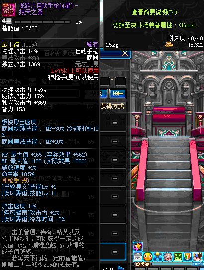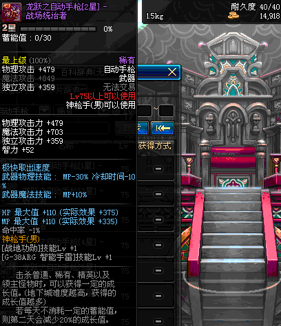 | 75 | 龙跃之自动手枪[4星] – 机械之灵 | *完成二次觉醒任务后可以从NPC小铁柱处获得此道具。 | ||