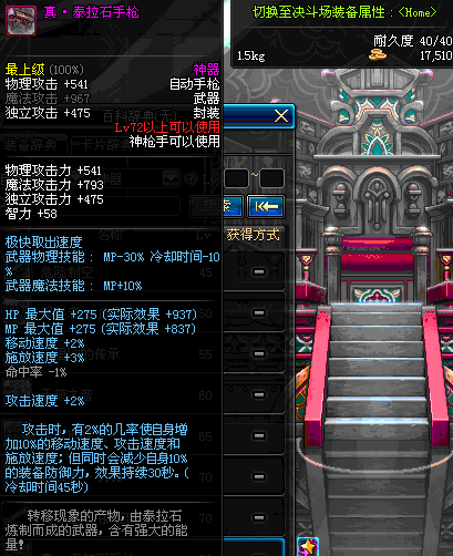 | 72 | 真·泰拉石手枪 | *设计图(70LV以上普通地下城 登场的NPC加百利 出售) *泰拉石手枪 → 用远古神器装备进化书升级(NPC船长鲁特 出售) |