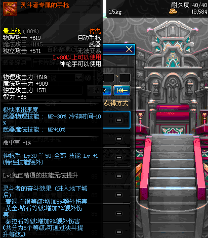 | 40 | 圣物 : 黑暗天使之雷鸣手枪 | *Lv39~46普通地下城怪物掉落 |