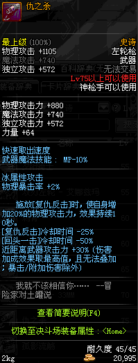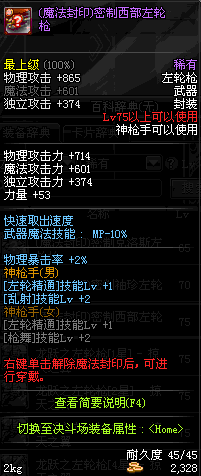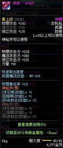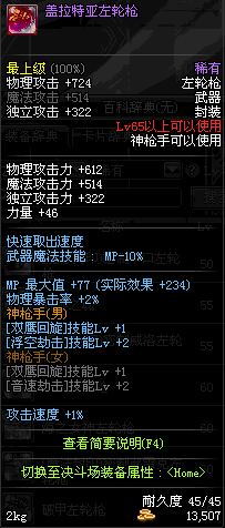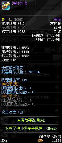 | 15 | (魔法封印)密制新式骑兵左轮枪 | *Lv13~21普通地下城怪物掉落 *完成[专职贺礼]任务 |