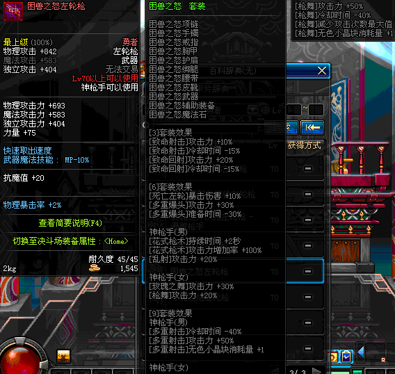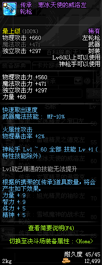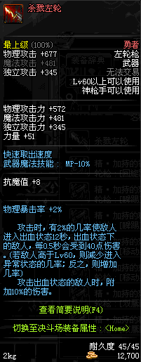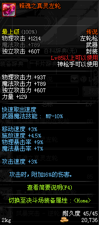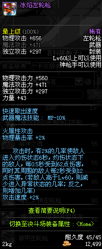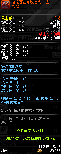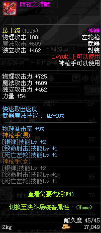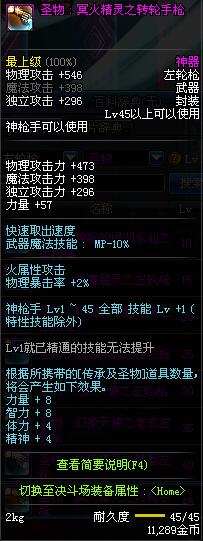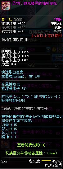 | 45 | 圣物 : 冥火精灵之转轮手枪 | *Lv45~51普通地下城怪物掉落 |