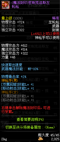 | 65 | 柯尔特 - 咆哮者 | *Lv65~71普通地下城怪物掉落 *在加百利的神秘商店购买 |