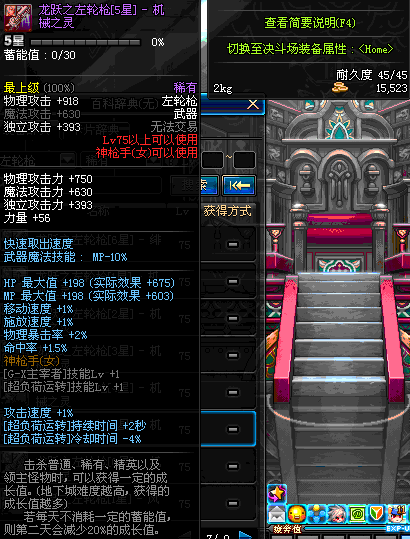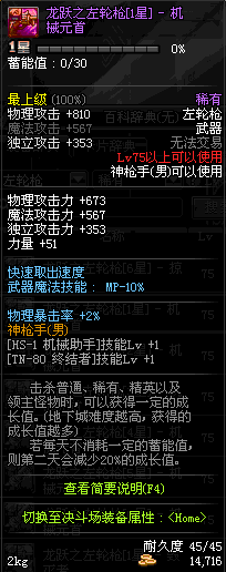 | 75 | 龙跃之左轮枪[6星] – 机械之灵 | *完成二次觉醒任务后可以从NPC小铁柱处获得此道具。 | ||